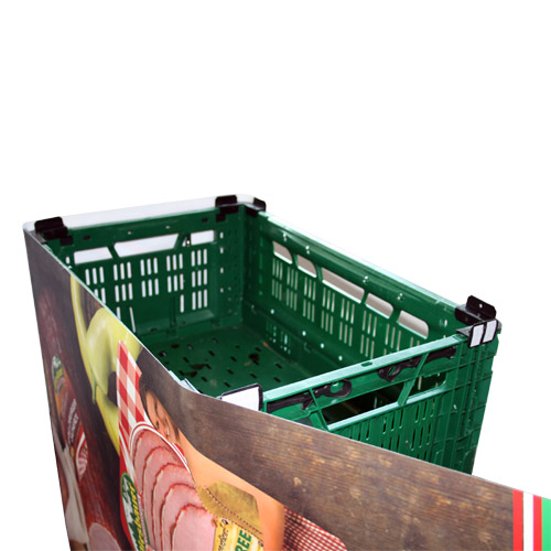 Met de euroconnector hebt u de mogelijkheid uw opslaglocaties te gebruiken als reclamemedia. Gewoon aan de vier hoeken een euroconnector bevestigen en uw promotionele display door middel van klittenband aan de euroconnectors vast maken. U hebt ook de mogelijkheid de euroconnector op bijna elke hoek en te gebruiken en zo tafels, planken, rekken en dergelijke als reclamemedium te gebruiken.
